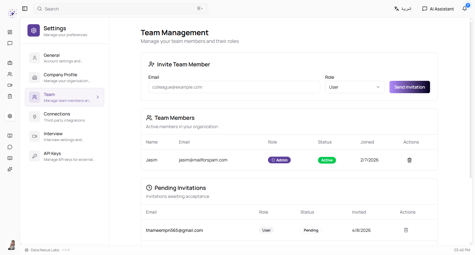 This is our biggest release yet, covering everything we've built since Beta v0.12 (Feb 25, 2026). It brings natural voice AI interviews, full Arabic language support, automatic reading of scanned CVs, side-by-side candidate comparison, instant live updates across the app, the ability to re-evaluate applicants, editable AI scores, and many other improvements and fixes from the past seven weeks.