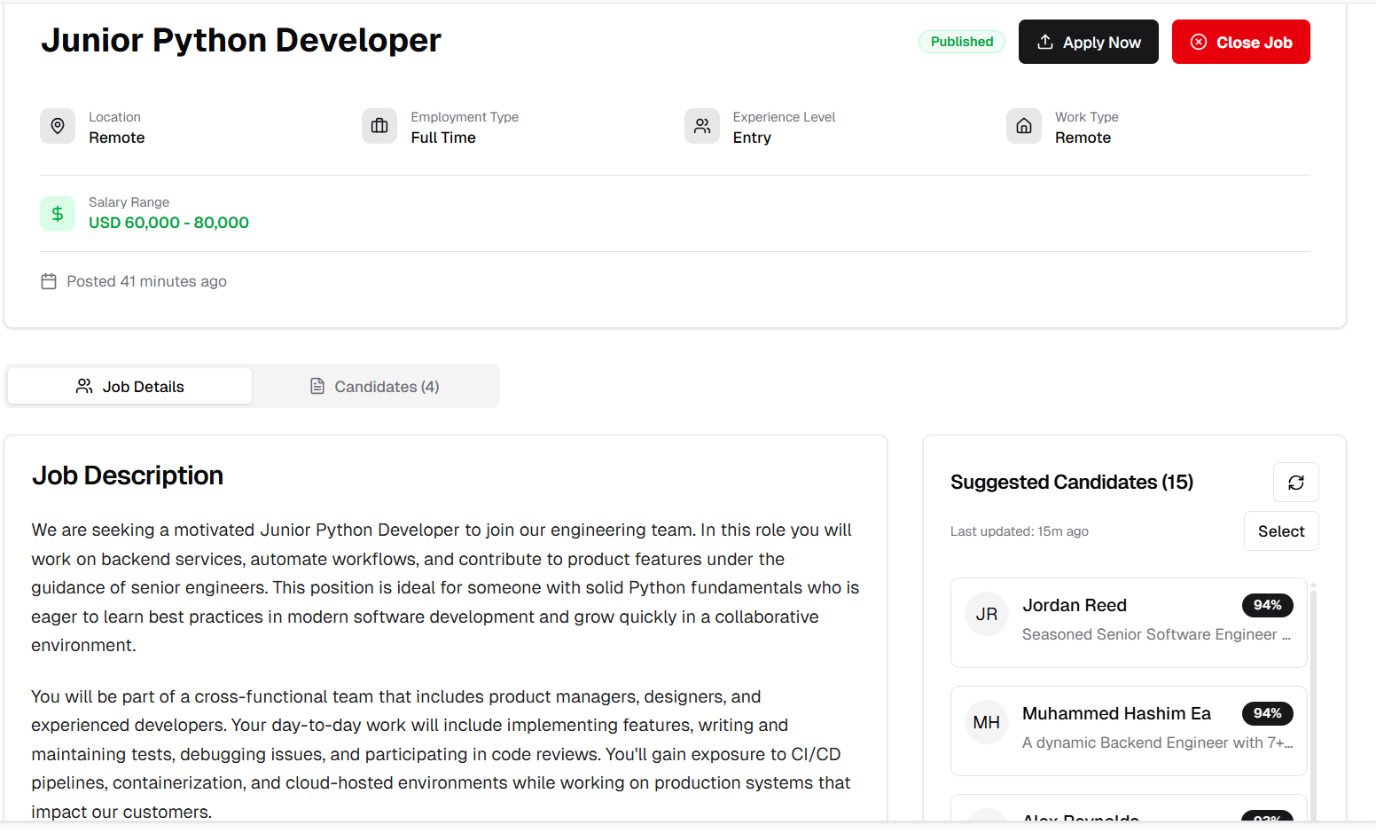 9. Candidates appear in job applicants list